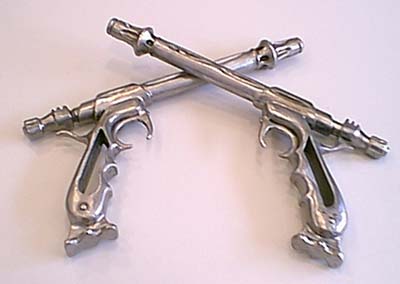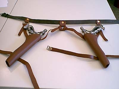 Diese nette Errungenschaft hab ich einem Kunden zu verdanken, der sonst mittelalterlische Waffen und Rüstungen für Showkämpfe baut (Danke nochmal Ulrich), ich hab ihm die Preview-Bilder von Jango und seinen Pistolen gezeigt und er hat sofort Gefallen an der Aufgabe gefunden. Da es ja nur diese Softpfeil Pistolen oder diese Resin Teile gibt (zur Zeit aber nur in USA) war das natürlich für mich super ! Hat zwar etwas gedauert, aber das Ergebnis kann sich sehen lassen, oder ? Die beiden sind aus Stahl und wiegen jeweils 1100g, der Lederholster läßt sich verstellen. Bis jetzt sind sie noch nicht verzinnt, wollte das aber asap nachholen. Falls jemand Interesse hat auch so was Exklusives zu haben, meine Mail habt ihr....aber so 350 EUR solltet Ihr übrig haben..... | |||||||||||||||||||||||||||||||||||||||||||||||||||||||||||||||||||
